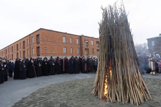 Անդաստան և Խարույկ. Եկեղեցիներում կատարվում է Անդաստանի կարգ (արտերի և աշխարհի 4 կողմերի օրհնություն), որից հետո օրհնված մոմով վառվում է ավանդական խարույկը։ Կրակը քրիստոնեական ընկալմամբ խորհրդանշում է Քրիստոսի լույսն ու ջերմությունը։