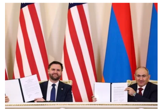 Նրանք՝ սեփական պատասխանատվությամբ և ռիսկով, անտեսում են իրենց սահմաններին ամերիկյան ցանկացած ներկայության դեմ Ռուսաստանի և Իրանի հստակ նախազգուշացումները։ Վենսը նախ ժամանել է Հայաստան՝ երկուշաբթի օրը անձրևոտ կեսօրին Միլանից վայրէջք կատարելով Երևանում։ Նրա այցի հիմնական նպատակն է եղել ամրապնդել Ամերիկայի հավատարմությունը TRIPP ծրագրին»,- գրում է Շաքարյանը։