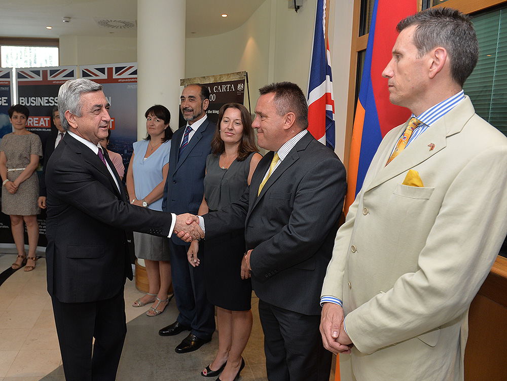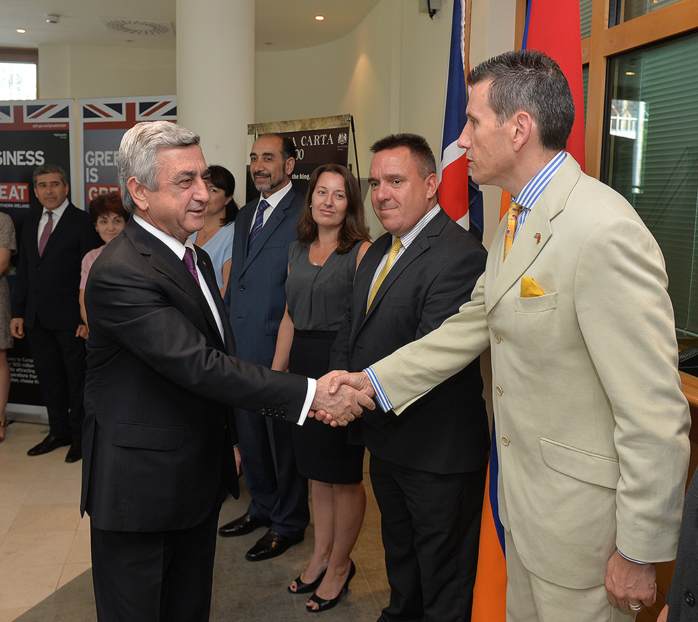 Սերժ Սարգսյանը Մեծ Բրիտանիայի ազգային տոնի կապակցությամբ այսօր այցելել է նաև Հայաստանի Հանրապետությունում Միացյալ Թագավորության դեսպանատուն` շնորհավորել դեսպան Քեթրին Ջեյն Լիչին և դեսպանատան ամբողջ անձնակազմին:
