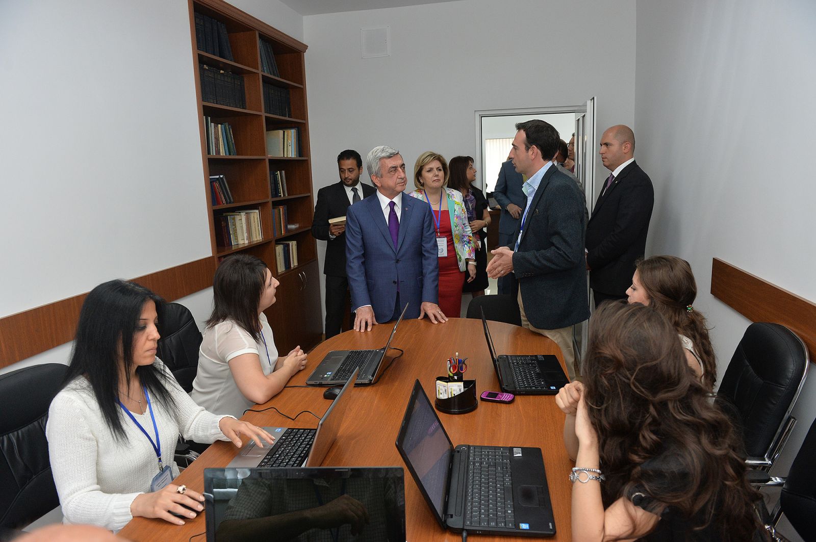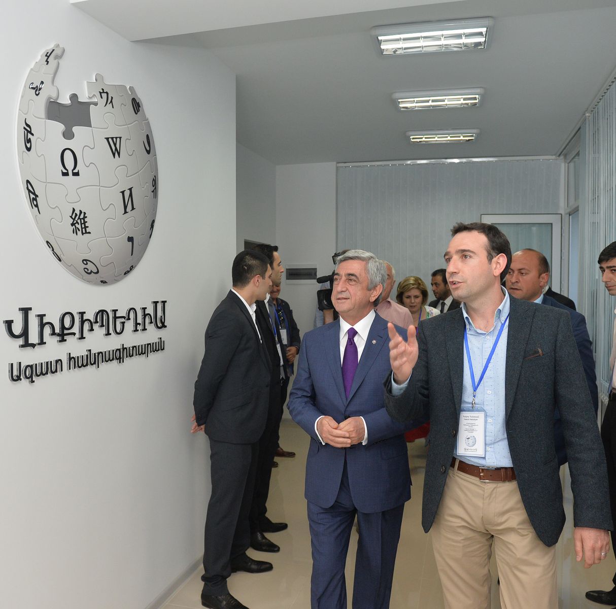 Հանրապետության Նախագահը շրջայց է կատարել գրասենյակում, ծանոթացել «Վիքիմեդիա Հայաստան»-ի գործունեությանը և առաջիկա ծրագրերին: Նախագահին ներկայացրել են, որ որպես «Վիքիմեդիա» հիմնադրամի հայաստանյան մասնաճյուղ հիմնադրված «Վիքիմեդիա Հայաստան»-ի նպատակն է՝ խթանել վիքի նախագծերի տարածումը և զարգացումը Հայաստանում ու տարածաշրջանում, հանրայնացնել ազատ գիտելիքի գաղափարը: