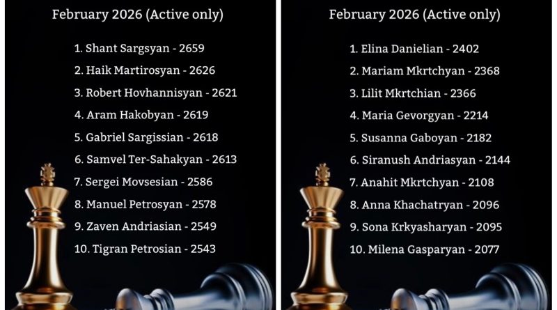 Սպորտ Армения Հրապարակվել են Հայաստանի 10 լավագույն շախմատիստների և շախմատիստուհիների անունները 2026/02/02 10:33